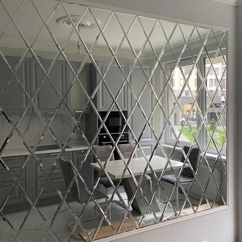 Использована серебряная зеркальная плитка «вытянутый ромб».